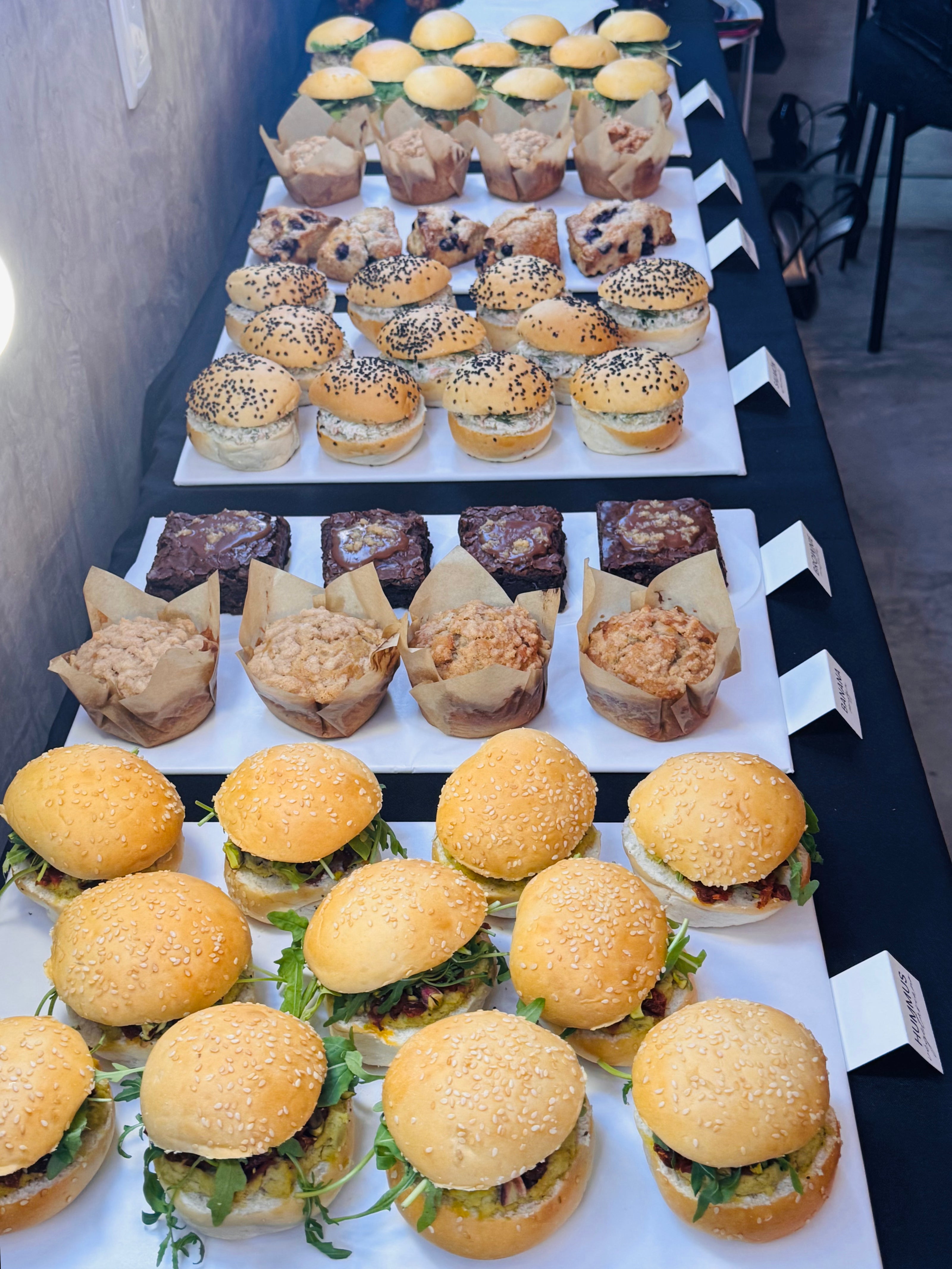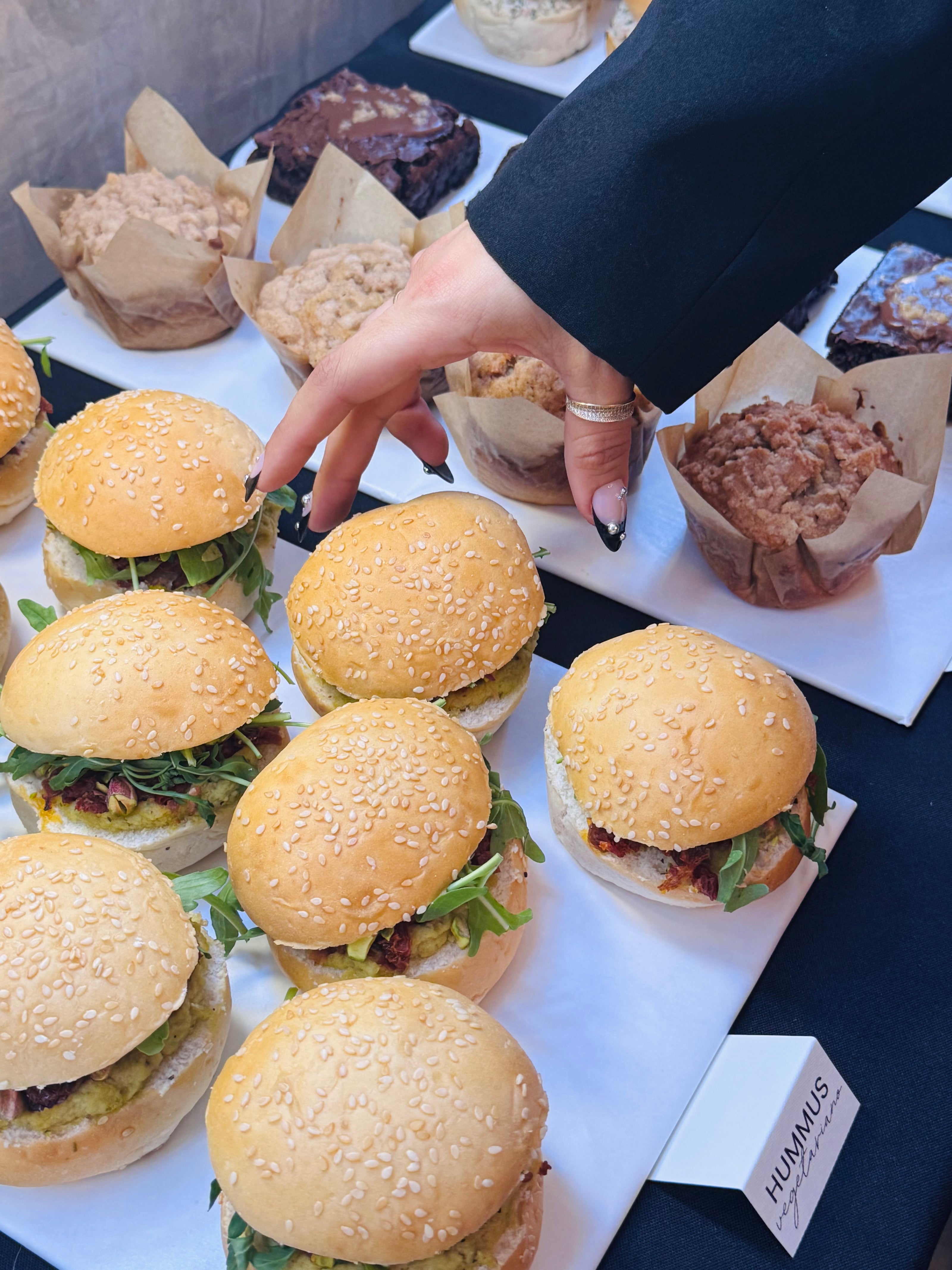 Opción vegana, relleno de hummus con pesto, pistaches tostados, tomate deshidratado y arúgula fresca.