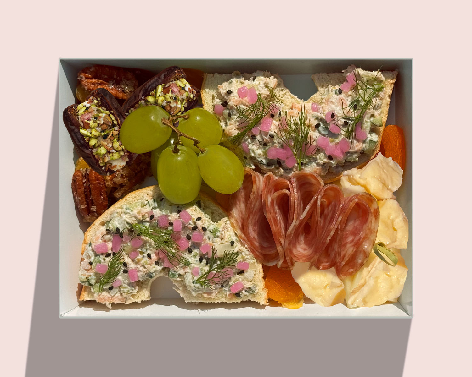 Cajitas listas para que tus invitados disfruten botanita, principal y acompañamientos dulces, todo en uno.